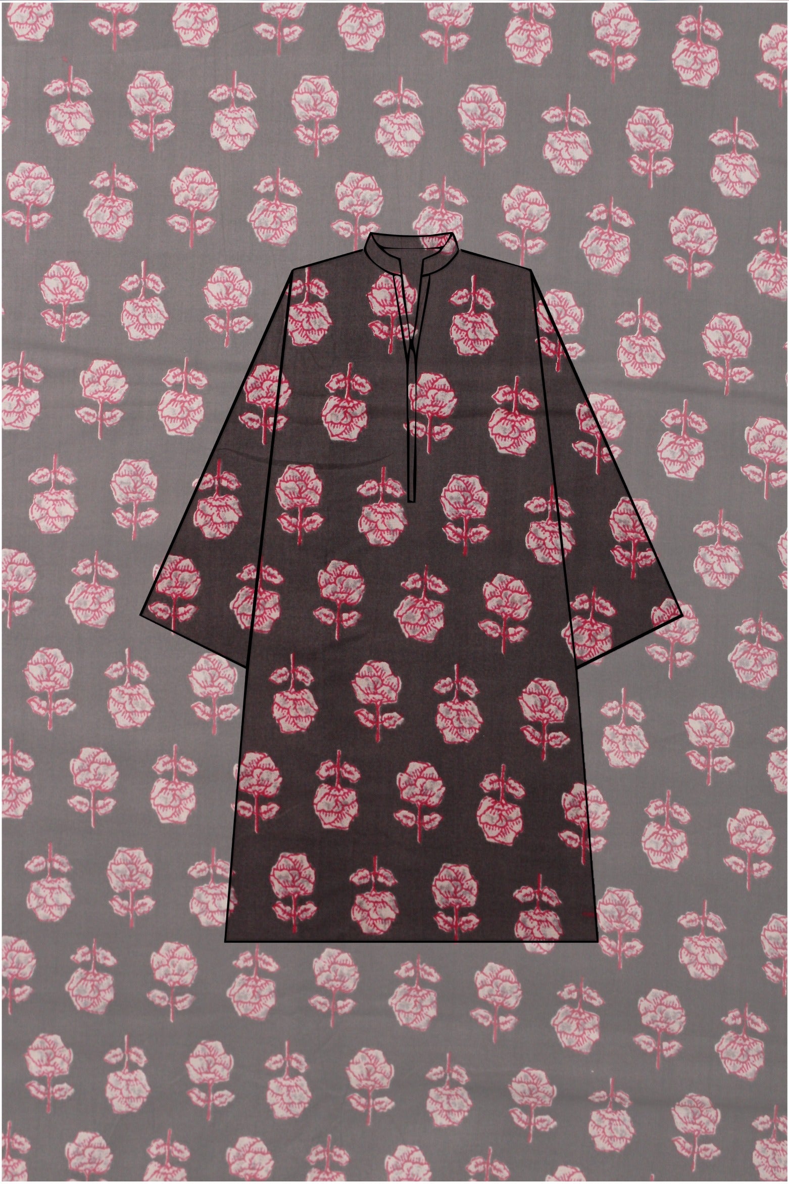 A striking fusion of blush pink patterns and charcoal florals, crafted for effortless elegance. Soft cotton feel meets bold design-perfect for day-to-evening dressing.