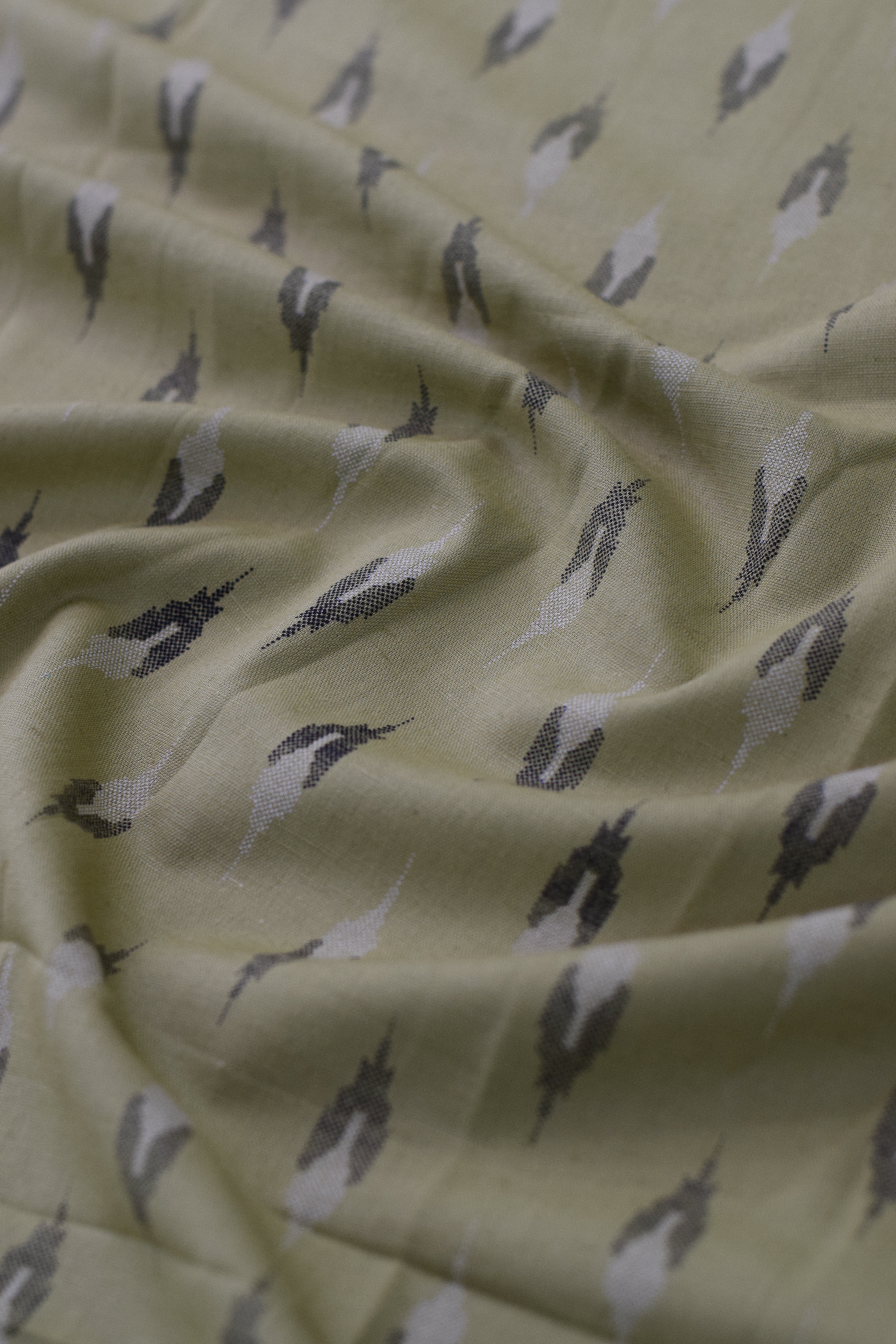 A subtle sage green base featuring soft ikat-style motifs in black and off-white. Understated yet timeless, this pattern exudes sophistication and is suited for formal or casual styles.