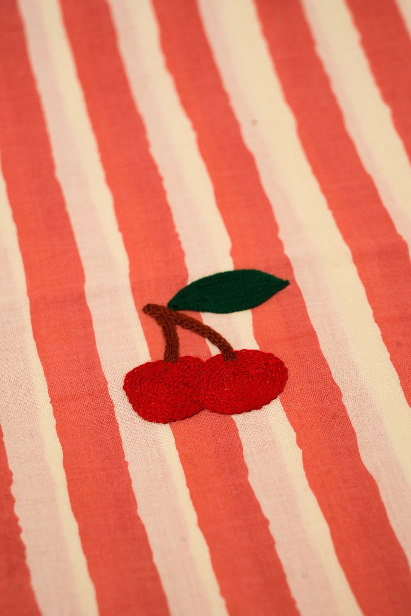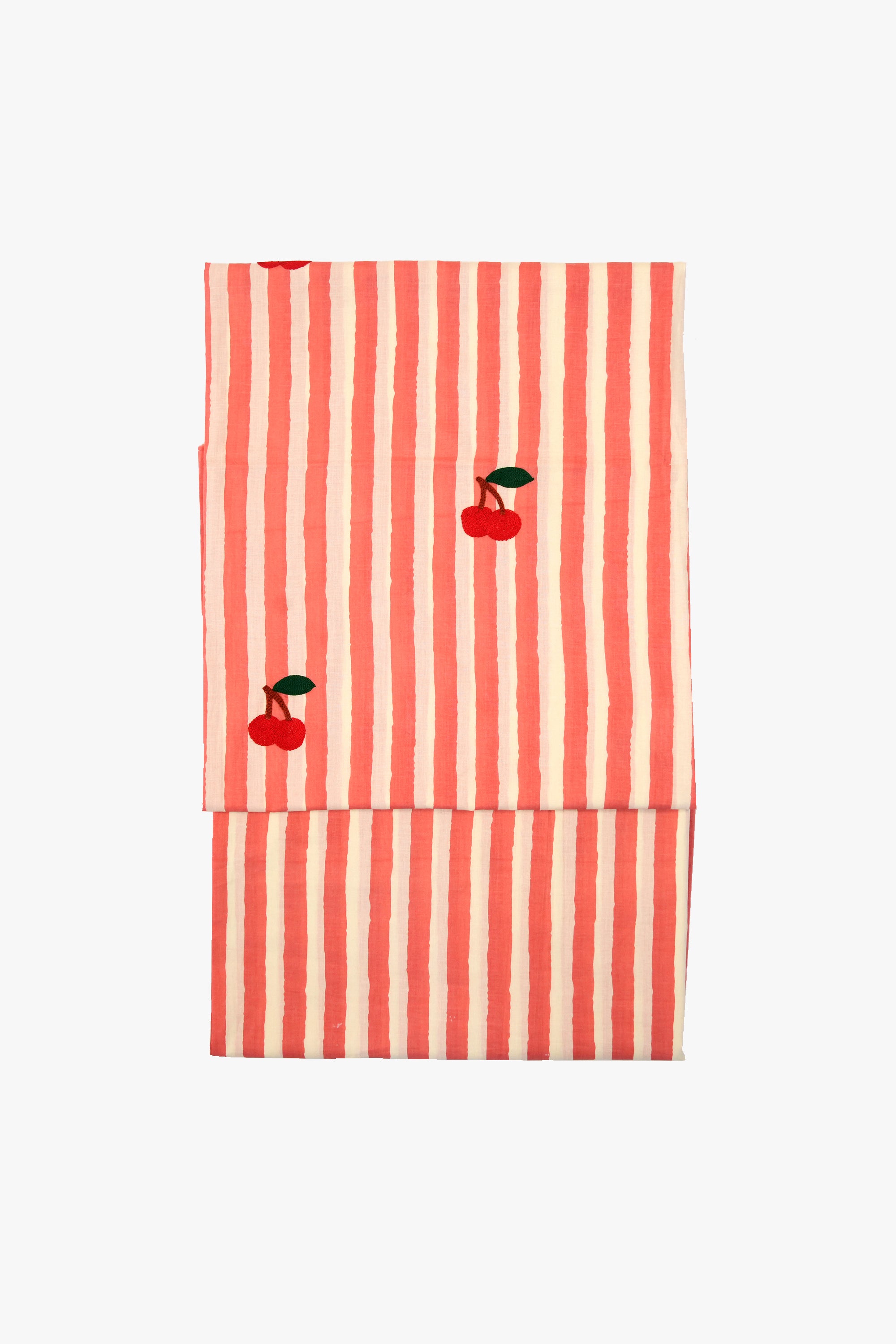 Gul Cherry blends soft peach and white striped cotton with delicate cherry embroidery. This embroidered cotton suit set is breezy yet elegant, making it the perfect pick for summer wear and casual celebrations.