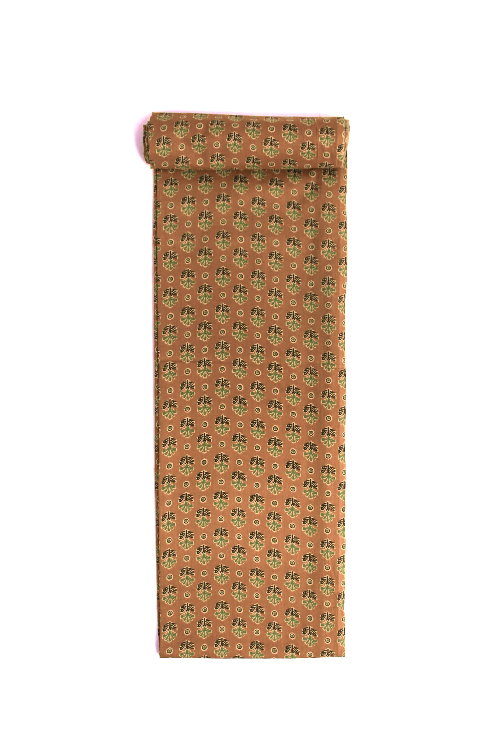 A cheerful ochre base sprinkled with tiny teal and navy floral motifs—subtle yet spirited, ideal for casual elegance.