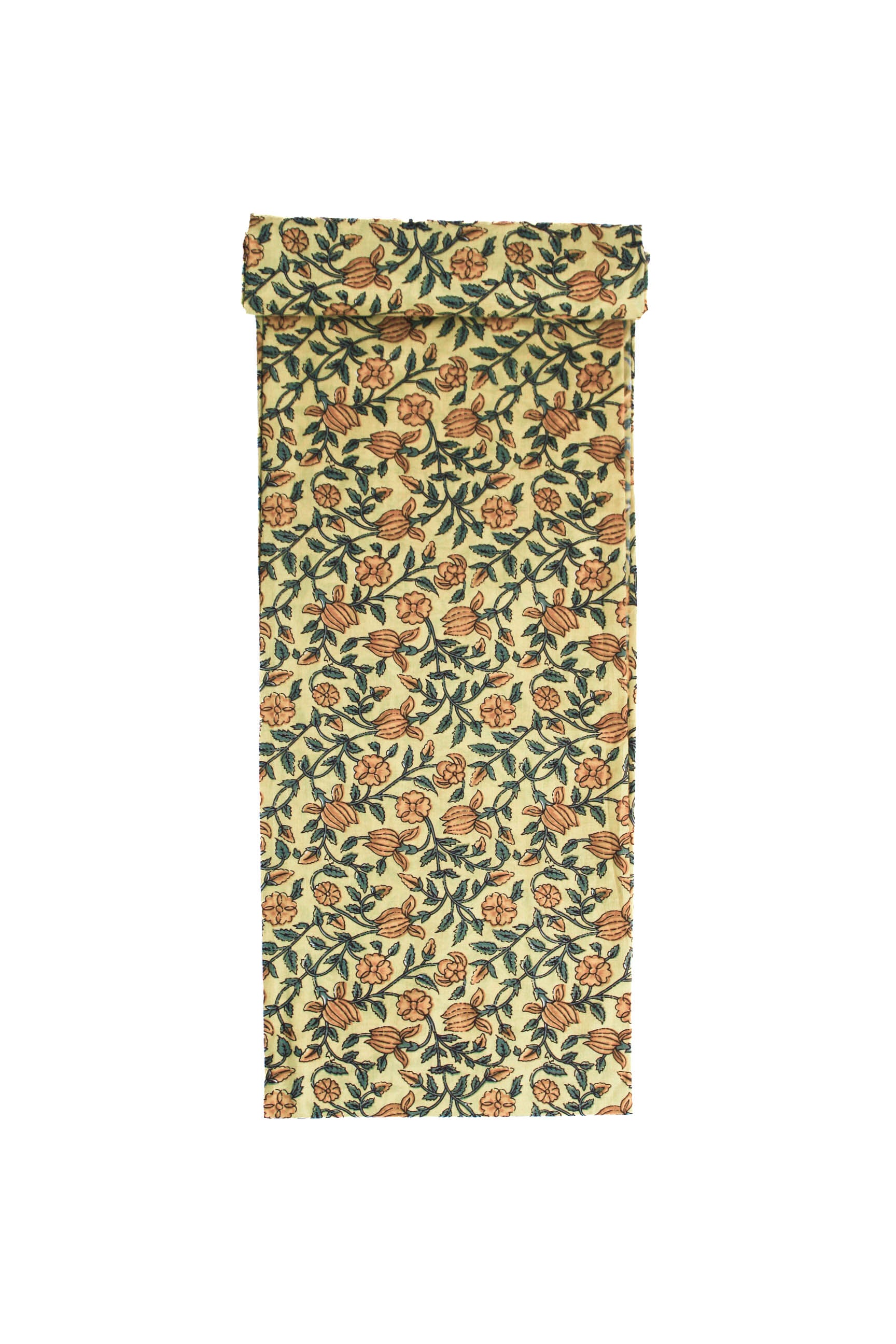 Golden mustard canvas with fine floral sketches in blue—whimsical and light, like a meadow in early autumn drawn in ink and joy.